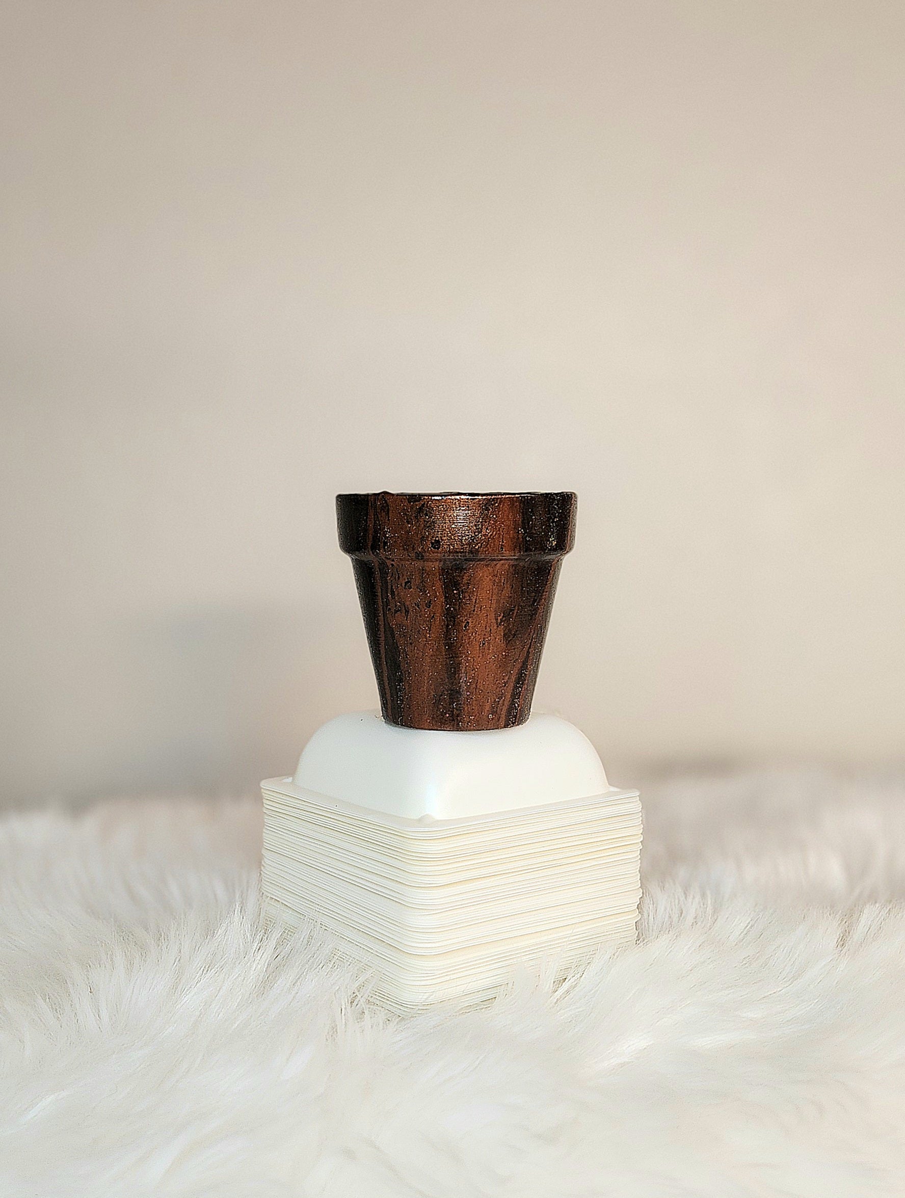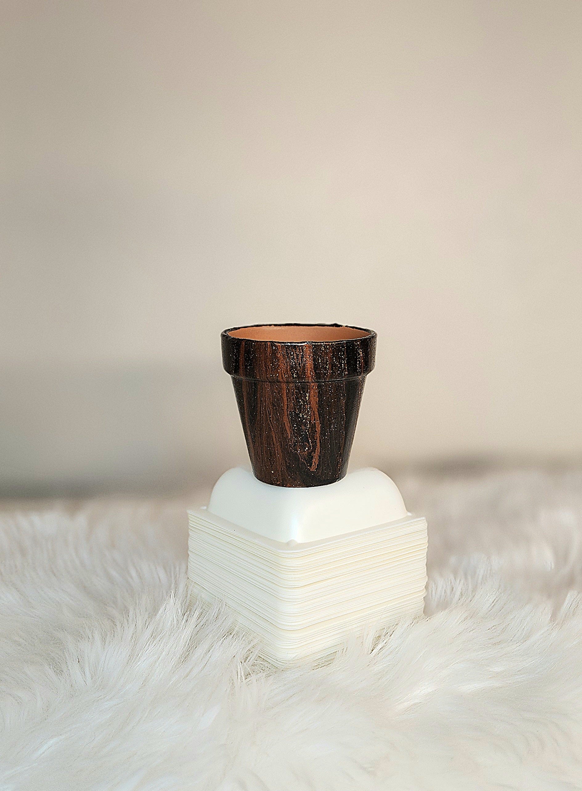 Handcrafted with care, this one-of-a-kind acrylic fluid art pot features a stunning blend of black, copper, and *gold sparkle. Perfect as a mini succulent pot, it's made of terracotta and measures 2.5"w x 2.5"h. Elevate your plant game today!