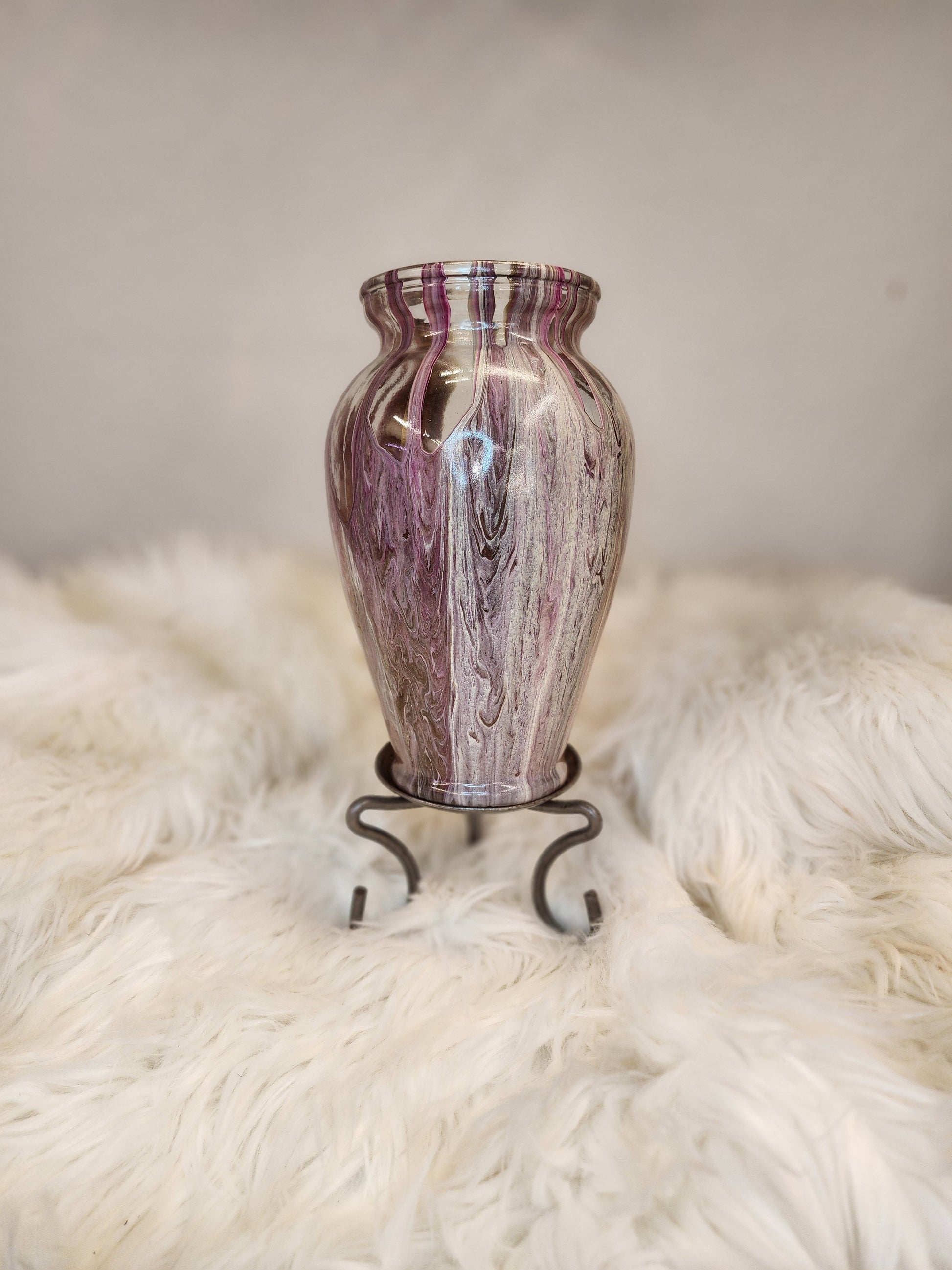 (Pink, White, and Tan) Acrylic Fluid Art Vase 6"W x 9"H